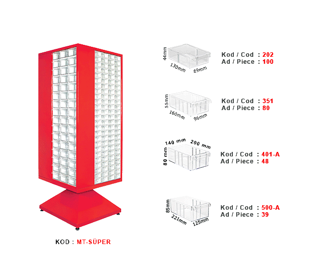 202 100 ad. / 351 80 ad. / 401-A 48 ad. 500-A 39 ad. çekmece mevcuttur.