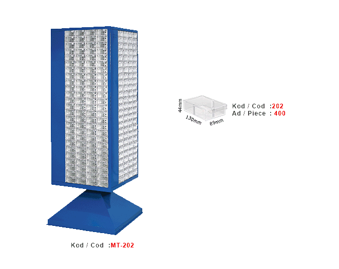 400 Plastik çekmeceli kutulu, dört yönlü dönen metal gövdeli dolap