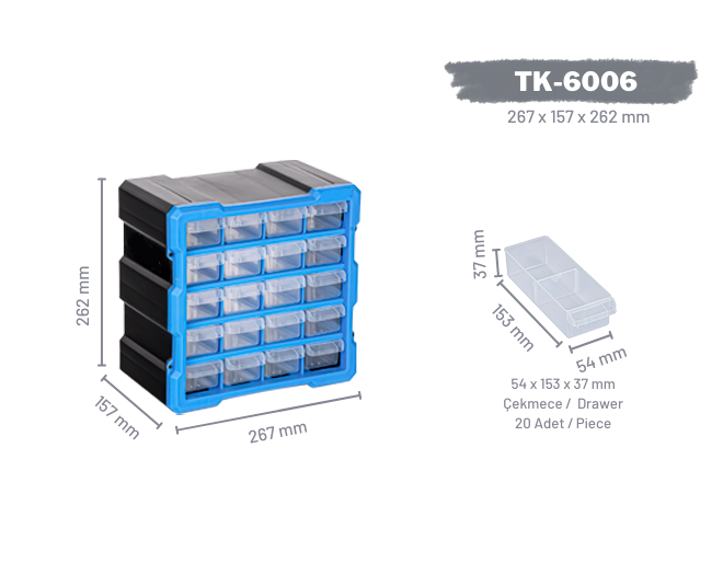 TK-6006 Plastik monoblok 20 çekmeceli set